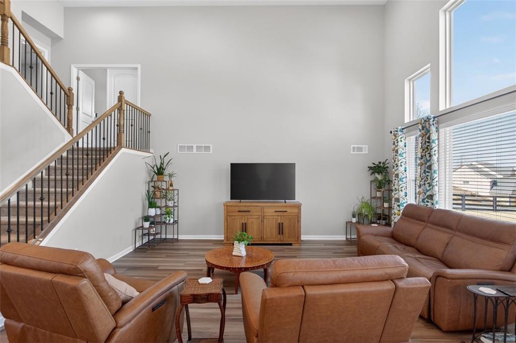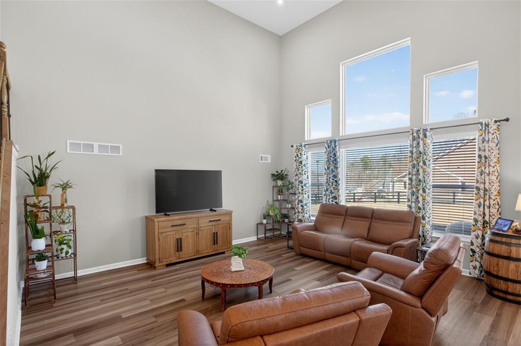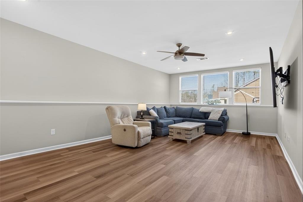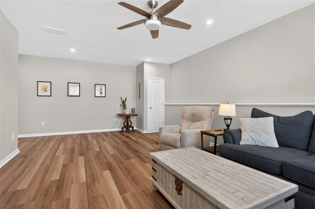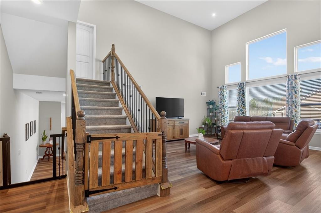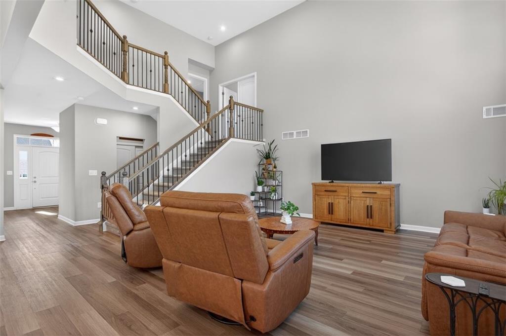 Take advantage of this huge price drop!!! Welcome to this beautiful 4-bedroom, 3.5-bath home perfectly situated on a corner lot with a fenced-in backyard. From the moment you step inside, you’ll be impressed by the elegant design, abundant natural light, and thoughtful layout that make this home truly special. Just off the entryway is a lovely office space, ideal for remote work or quiet study. The open-concept main living area showcases the standout kitchen, complete with a massive island with seating, bright white cabinetry, and ample storage throughout. This home features a unique multi-level floor plan with only a few steps separating each level, offering both functionality and charm. A few steps down from the main floor leads to a fully finished terrace level, currently set up as a theater room perfect for movie nights but easily adaptable as a gym, playroom, or versatile bonus space. The terrace level also features brand-new LVP flooring, adding both style and durability. Just a few steps up from the main level, on its own private floor, you’ll find the spacious primary suite with a comfortable seating area and a luxurious ensuite bath. The breathtaking shower in the primary bath is truly a showstopper. The conveniently located laundry room is also on this level. Upstairs, you'll discover three additional generously sized bedrooms with ample closet space, ideal for family, guests, or hobbies. Throughout the home, you’ll appreciate the new blinds, providing a fresh, modern touch and enhanced privacy. Outside, enjoy the privacy of the corner lot, a three-car garage with extra storage, and a beautifully maintained yard perfect for entertaining or relaxing. Located in the amenity-rich River Rock community, residents enjoy access to an Olympic-size pool, tennis and pickleball courts, a playground, clubhouse, and scenic walking trails leading down to the river. The neighborhood offers an active, welcoming lifestyle that is second to none. Come experience all that this incredible home and community have to offer! Sellers are relocating and are motivated. The best value in the neighborhood!