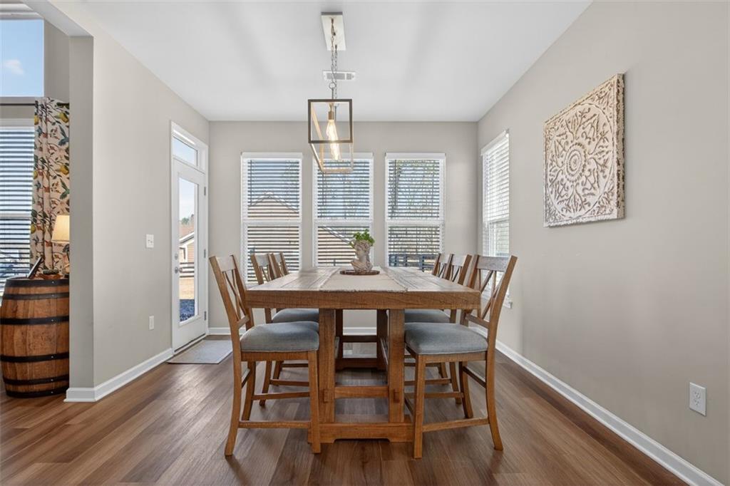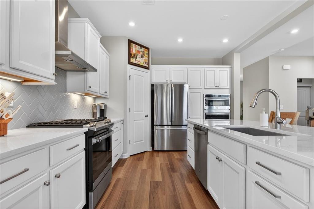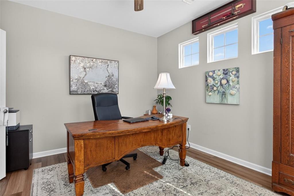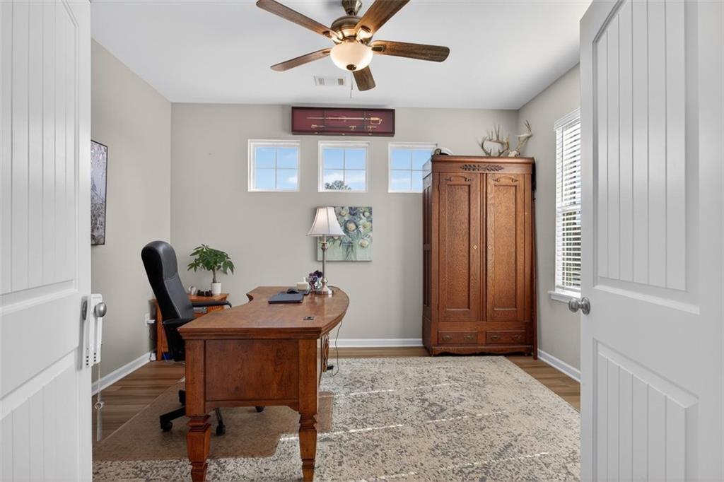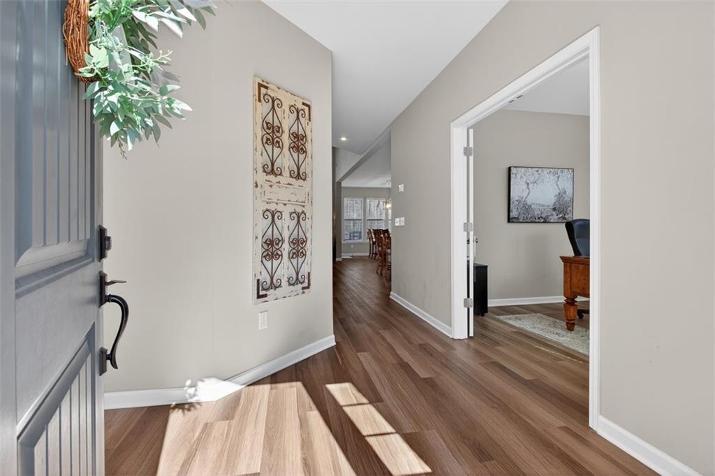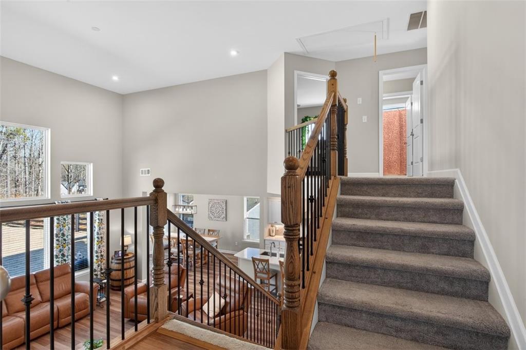 Take advantage of this huge price drop!!! Welcome to this beautiful 4-bedroom, 3.5-bath home perfectly situated on a corner lot with a fenced-in backyard. From the moment you step inside, you’ll be impressed by the elegant design, abundant natural light, and thoughtful layout that make this home truly special. Just off the entryway is a lovely office space, ideal for remote work or quiet study. The open-concept main living area showcases the standout kitchen, complete with a massive island with seating, bright white cabinetry, and ample storage throughout. This home features a unique multi-level floor plan with only a few steps separating each level, offering both functionality and charm. A few steps down from the main floor leads to a fully finished terrace level, currently set up as a theater room perfect for movie nights but easily adaptable as a gym, playroom, or versatile bonus space. The terrace level also features brand-new LVP flooring, adding both style and durability. Just a few steps up from the main level, on its own private floor, you’ll find the spacious primary suite with a comfortable seating area and a luxurious ensuite bath. The breathtaking shower in the primary bath is truly a showstopper. The conveniently located laundry room is also on this level. Upstairs, you'll discover three additional generously sized bedrooms with ample closet space, ideal for family, guests, or hobbies. Throughout the home, you’ll appreciate the new blinds, providing a fresh, modern touch and enhanced privacy. Outside, enjoy the privacy of the corner lot, a three-car garage with extra storage, and a beautifully maintained yard perfect for entertaining or relaxing. Located in the amenity-rich River Rock community, residents enjoy access to an Olympic-size pool, tennis and pickleball courts, a playground, clubhouse, and scenic walking trails leading down to the river. The neighborhood offers an active, welcoming lifestyle that is second to none. Come experience all that this incredible home and community have to offer! Sellers are relocating and are motivated. The best value in the neighborhood!