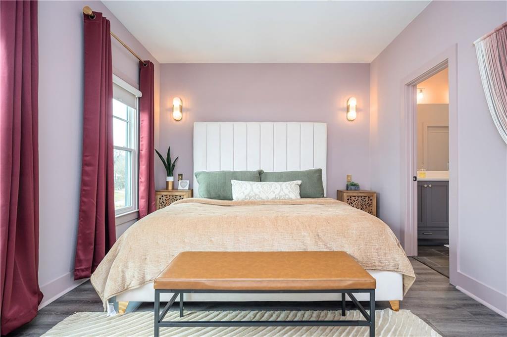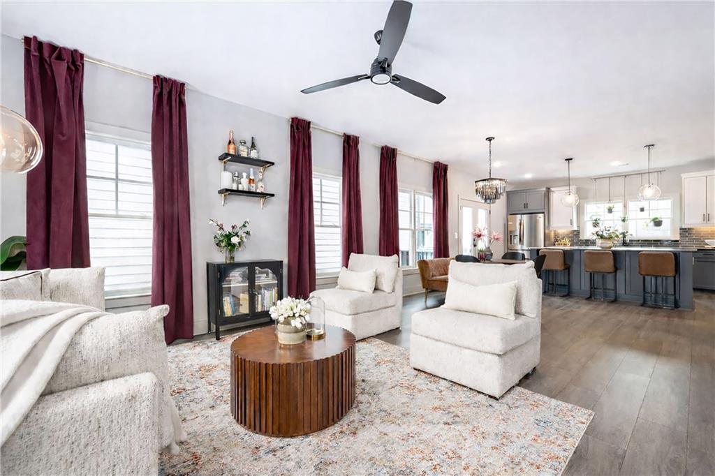 Better than new and offered by the original owner, this beautifully maintained Stillwood residence delivers a truly move-in ready experience that surpasses new construction. Thoughtfully upgraded beyond builder finishes, the home features custom blinds and window treatments, designer lighting, and curated details that create a refined yet comfortable feel. A one-year home warranty is included for added peace of mind. Located in the award-winning “Best Atlanta Neighborhood” by Urbanize Atlanta, this popular floor plan is filled with natural light from expansive windows and features hardwood floors and open-concept living spaces ideal for everyday living and entertaining. The kitchen showcases granite countertops, custom cabinetry, premium Frigidaire appliances, and a dedicated pantry for functional storage. Designer touches continue throughout with quartz vanity countertops and a cozy fireplace anchoring the main living area. A private balcony serves as a seamless extension of the living space, perfect for entertaining or relaxing outdoors. Rare for the community, the side yard adds valuable flexibility and is currently styled with a firepit and lounge seating. It could easily accommodate grilling, a dog run, or expanded outdoor living. Each bedroom enjoys access to its own private bathroom, making the layout ideal for roommates or guests. Epoxied garage floors and meticulously maintained interiors reflect true pride of ownership. Community sidewalks lead to Stillwood’s pool, cabana, and nature preserve. Minutes from Downtown Atlanta, I-75 and I-85, Hartsfield-Jackson International Airport, and major employers including Delta, Porsche, Chick-fil-A, Wells Fargo, and nearby film studios.