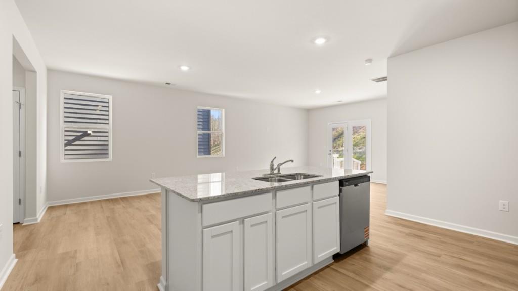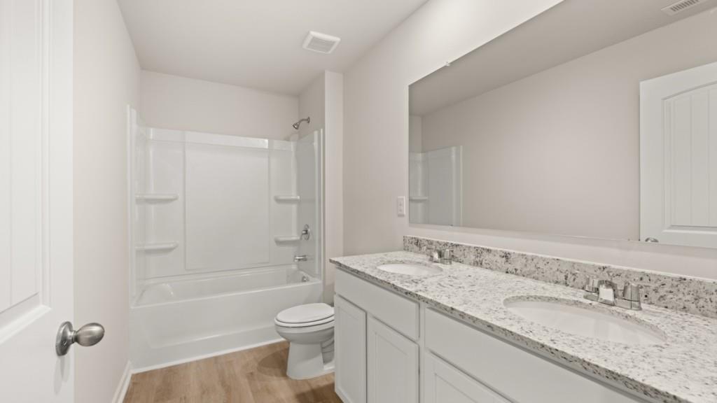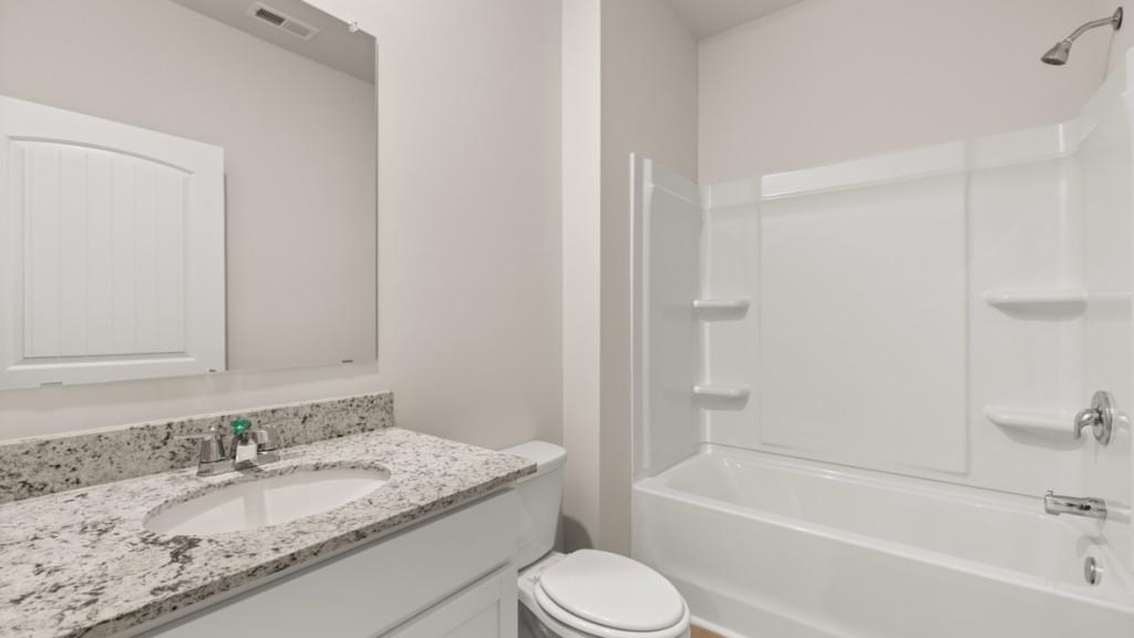 Introducing 2910 Daxton Lane a two-story home in our Gainesville, GA community of Oconee Overlook. This Robie floorplan home features 5 bedrooms and 3 bathrooms, plus a 2-car garage in 2,361 square feet. Through the front door, a foyer will welcome guests passed the stairway into the main living area. The open family room allows room for a dining table to enjoy meals with loved ones or to relax after a hard day's work in front of the gas fireplace. A large island separates the kitchen from the living area providing space to enjoy a quick meal or prepare food for the family. The kitchen is well equipped with white shaker style cabinets with soft close doors, granite countertops, stainless-steel appliances, and a walk-in pantry. A spare bedroom and bathroom sit off the kitchen. Once you head upstairs, you are greeted by an open loft area that allows easy access to the 4 remaining bedrooms in the house, including the primary suite. The primary bedroom offers rest and relaxation with the deluxe bathroom featuring dual vanity, walk-in closet, and separate soaking tub and walk-in shower. Homeowners will enjoy easy access to the laundry room on the second floor, right outside the primary suite. If 2910 Daxton Lane sounds like your dream home, call our listing agents at Oconee Overlook to make it yours!