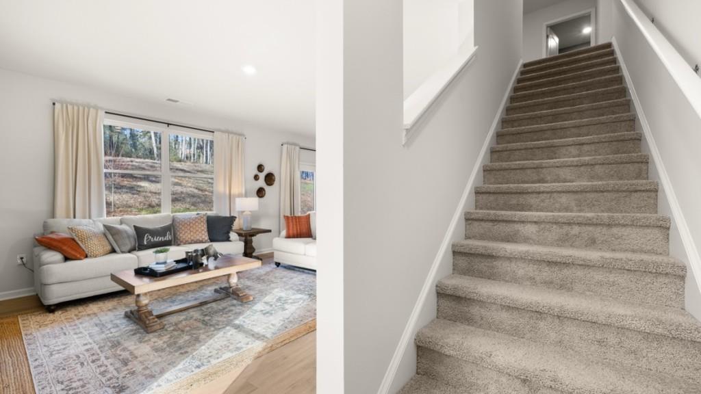 Welcome to 2955 Daxton Lane, featuring the Galen floorplan, a thoughtfully designed two-story home available to build in Oconee Overlook in Gainesville, GA. The Galen offers 4 bedrooms, 2.5 bathrooms, a 2-car garage, and 2,340 square feet of well-planned living space. Upon entering the home, you are greeted by the foyer that leads past a versatile flex space, ideal for a formal dining room or a home office. The powder room adds functionality before opening into the heart of the home. The living room is spacious and inviting, perfect for entertaining guests or relaxing with family. This space flows into the kitchen, which features stainless-steel appliances and classic shaker-style cabinets. The kitchen island also provides ample countertop seating. A corner pantry ensures plenty of storage for groceries and kitchen essentials. Upstairs, all four bedrooms are thoughtfully arranged alongside two full bathrooms and a centrally located laundry room for added convenience. The primary suite is complete with a spacious bedroom, an oversized walk-in closet, and a luxurious bathroom featuring a double vanity, separate soaking tub, and walk-in shower. Three additional bedrooms and a full bathroom round out the second floor. If the Galen at 2955 Daxton Lane sounds like the home you've been searching for, give us a call today. We would be delighted to schedule your on-site appointment at Oconee Overlook in Gainesville, GA and help you take the next step toward your dream home!