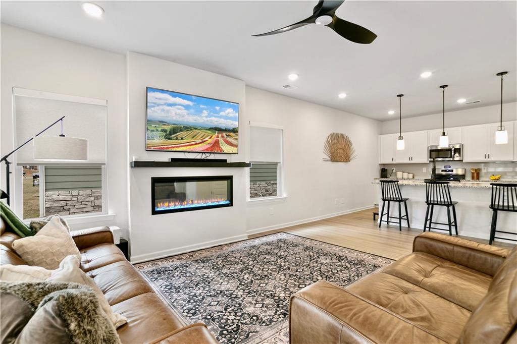 LIKE NEW! 2024 Home with 4 Bedrooms, 2.5 Baths and All the Right Finishes. The Covered Front Porch and Soft Luxury Vinyl Flooring throughout the Main Level welcomes you. Open Concept Floor Plan with Spacious Family Room and Built-in Electric Fireplace. Bright Kitchen Built for Entertaining features White Cabinets, Beautiful Granite Counters & Stainless Steel Appliances. A Massive Center Island and Pendant Lighting complete this Welcoming Space for Guests. Refrigerator, Washer and Dryer included in Sale. Split Bedroom Plan includes an Oversized Primary Suite with HUGE Walk-in Closet and Great Natural Light. Master Bath has Double Vanity with Quartz Counters. Separate Walk-in Tile Shower and Soaking Tub with Private Water Closet. Upstairs also has THREE Additional Bedrooms and Full Bath. Generous Laundry Room on Floor with Bedrooms. Two Car Garage with Insulated Doors. Covered Back Patio added by the builder separates this home from others. Fenced Backyard. Location! Location! Highland Crossing is a Convenient Neighborhood Moments from I-75 and Close to Shopping, Dining, etc. HOA includes Lawncare and Landscaping. Other Amenities featured are a Playground and Dog Park.