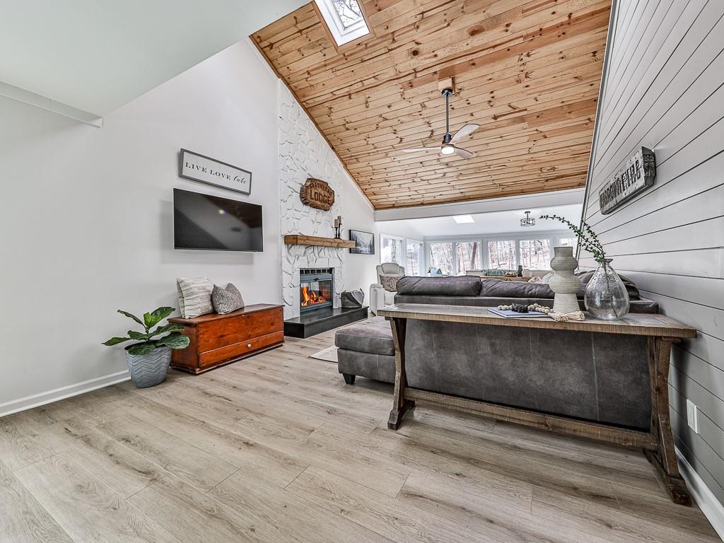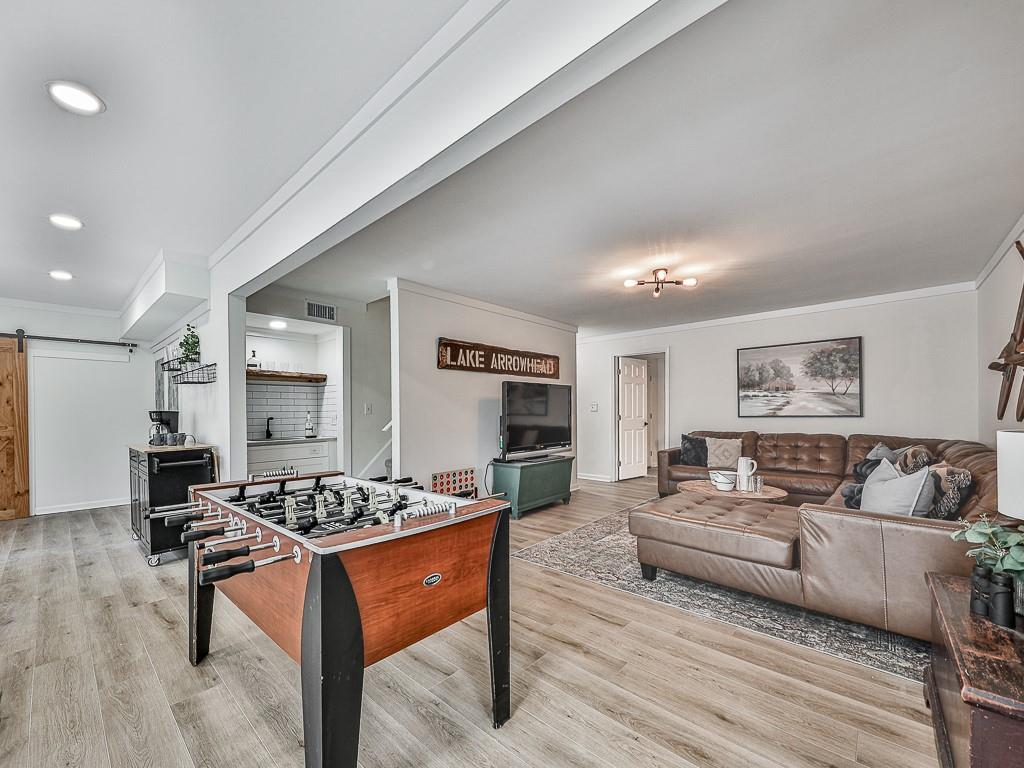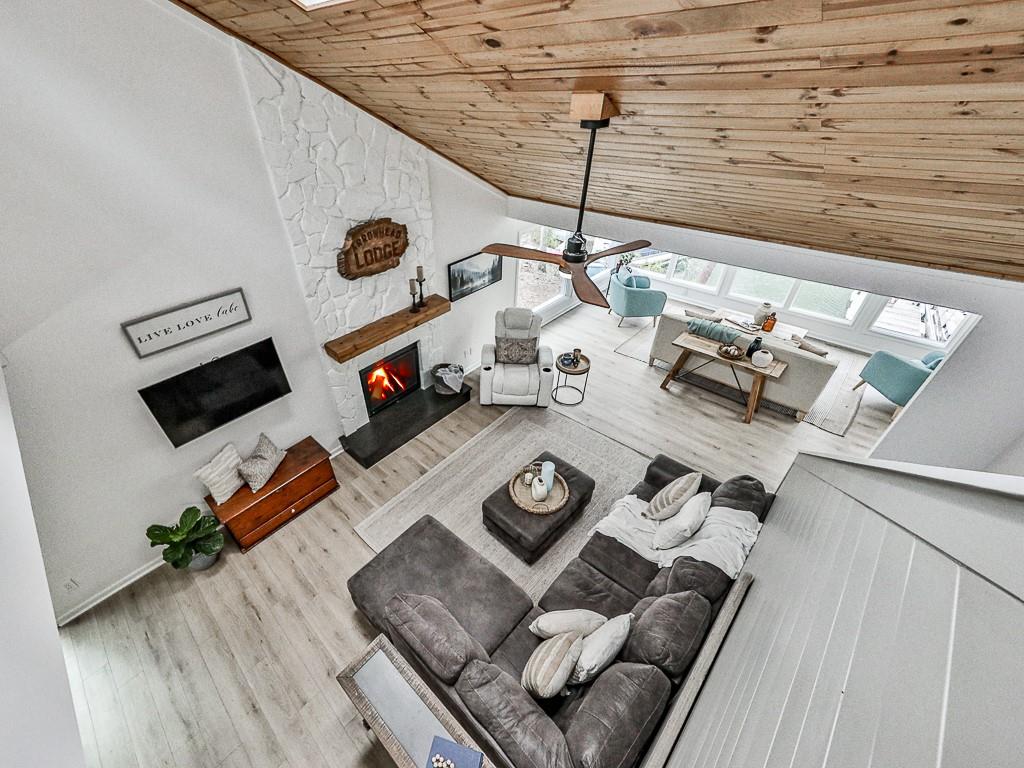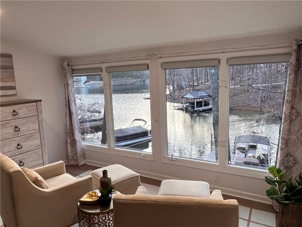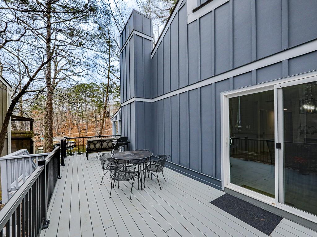 Wake up to breathtaking lake views, glowing sunrises, and abundant wildlife in this beautifully remodeled lakefront retreat. Designed for both relaxation and entertaining, the home offers countless places to enjoy the scenery — from three spacious decks and a covered porch to the private sitting area in the primary suite. Nearly every room captures stunning water views. Inside, walls of windows and skylights fill the home with natural light, highlighting vaulted ceilings and stylish designer updates throughout. The open living spaces are perfect for gathering, while five separate sleeping areas — including a bunk room and loft — make hosting family and friends effortless. The terrace level adds exceptional flexibility with its own private entrance and new sidewalk access, ideal for guests, multigenerational living, or potential rental income. With no rental restrictions, this property can easily serve as a full-time residence, weekend getaway, income-producing investment — or a combination of all three. Nestled in one of Lake Arrowhead’s most charming coves — affectionately known as Turtle Cove — the home is surrounded by trees and peaceful lake scenery. Spend your days grilling on the oversized party deck, swimming, paddle boarding, fishing, or launching your boat from your private dock with two slips and 5+ feet of water depth, a rare and highly sought-after feature on the lake. Despite its serene setting, you’re just minutes from Lake Arrowhead amenities, including golf, pools, clubhouse, marina, tennis, pickleball, parks, scenic trails, concerts, dining, and year-round community events. Lake living, flexibility, and exceptional value come together here—schedule your showing today and start enjoying life on the water. Listing agent may be available to show this home on very short notice, and certainly with extended notice.