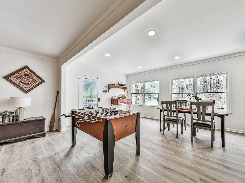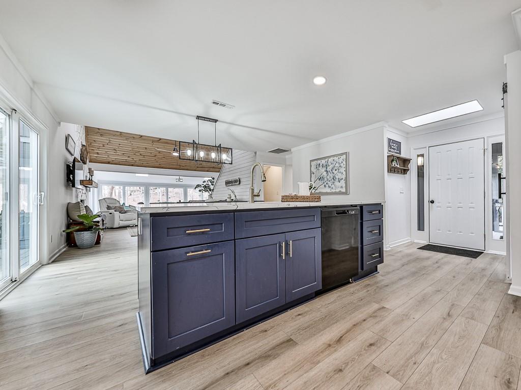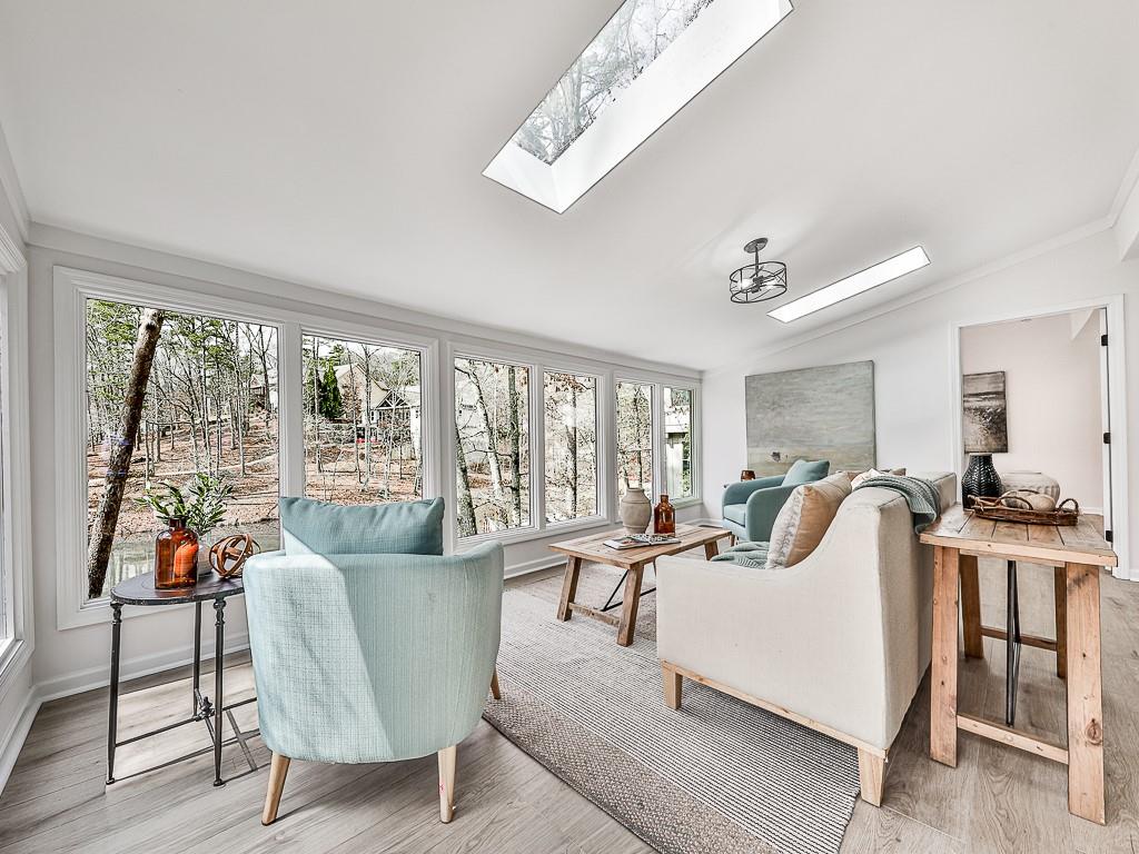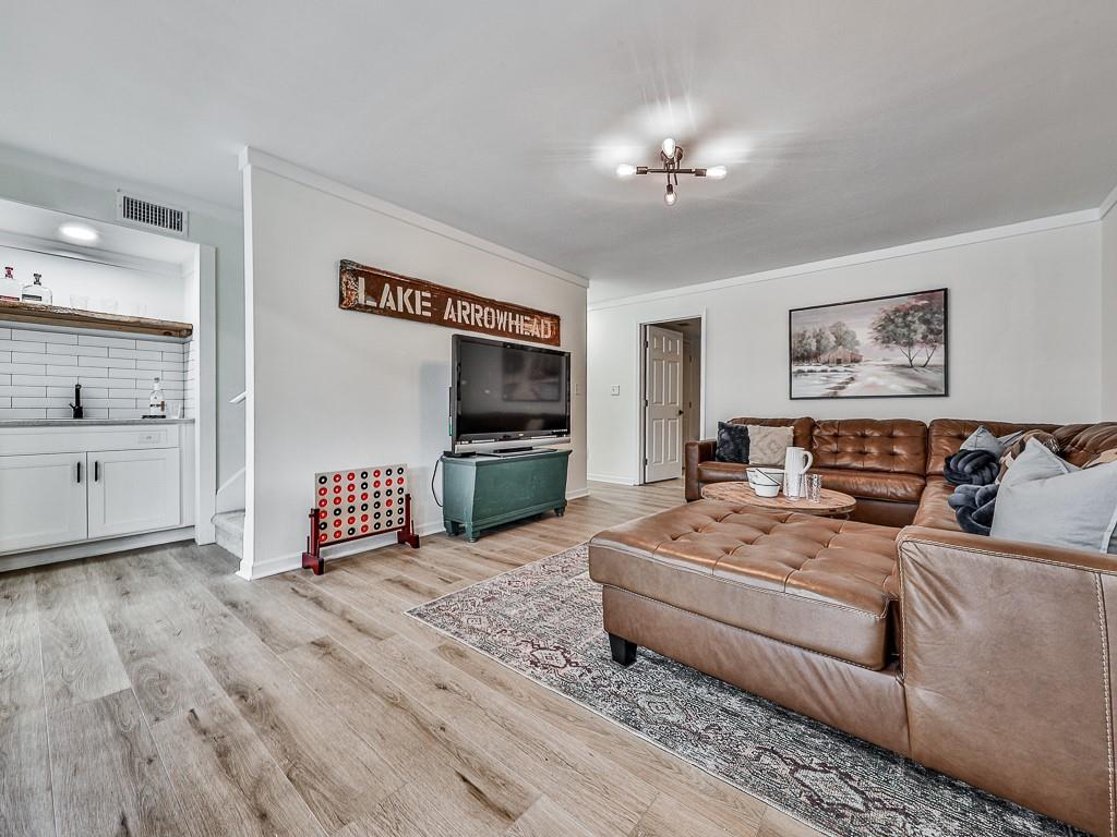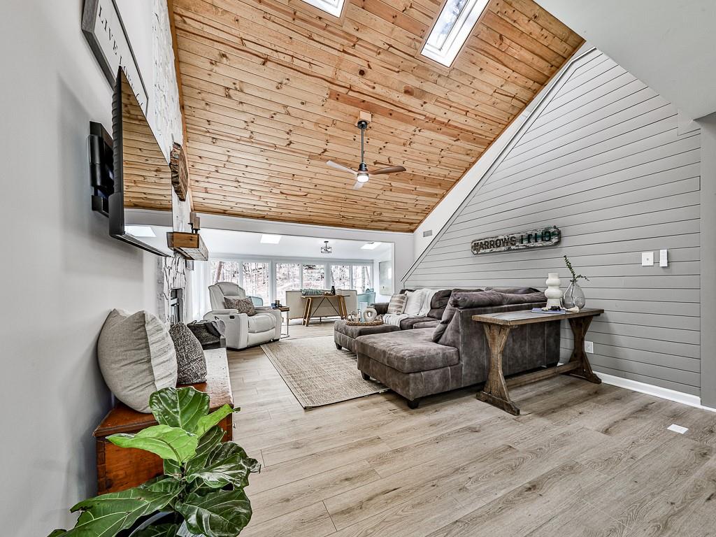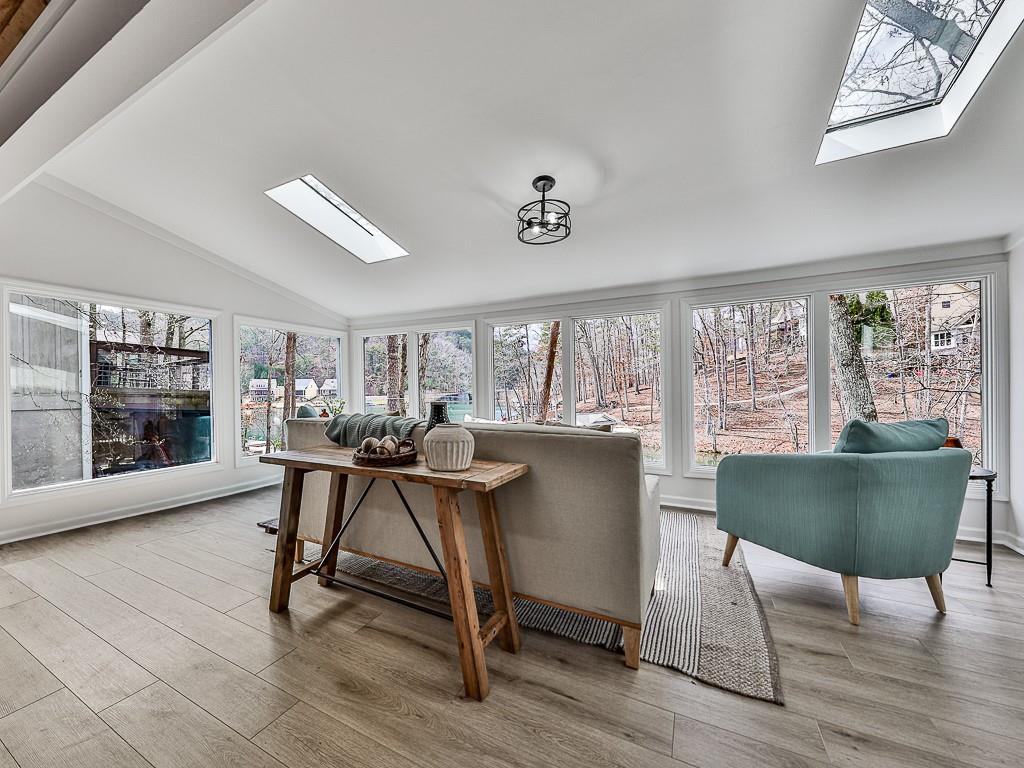 Wake up to breathtaking lake views, glowing sunrises, and abundant wildlife in this beautifully remodeled lakefront retreat. Designed for both relaxation and entertaining, the home offers countless places to enjoy the scenery — from three spacious decks and a covered porch to the private sitting area in the primary suite. Nearly every room captures stunning water views. Inside, walls of windows and skylights fill the home with natural light, highlighting vaulted ceilings and stylish designer updates throughout. The open living spaces are perfect for gathering, while five separate sleeping areas — including a bunk room and loft — make hosting family and friends effortless. The terrace level adds exceptional flexibility with its own private entrance and new sidewalk access, ideal for guests, multigenerational living, or potential rental income. With no rental restrictions, this property can easily serve as a full-time residence, weekend getaway, income-producing investment — or a combination of all three. Nestled in one of Lake Arrowhead’s most charming coves — affectionately known as Turtle Cove — the home is surrounded by trees and peaceful lake scenery. Spend your days grilling on the oversized party deck, swimming, paddle boarding, fishing, or launching your boat from your private dock with two slips and 5+ feet of water depth, a rare and highly sought-after feature on the lake. Despite its serene setting, you’re just minutes from Lake Arrowhead amenities, including golf, pools, clubhouse, marina, tennis, pickleball, parks, scenic trails, concerts, dining, and year-round community events. Lake living, flexibility, and exceptional value come together here—schedule your showing today and start enjoying life on the water. Listing agent may be available to show this home on very short notice, and certainly with extended notice.