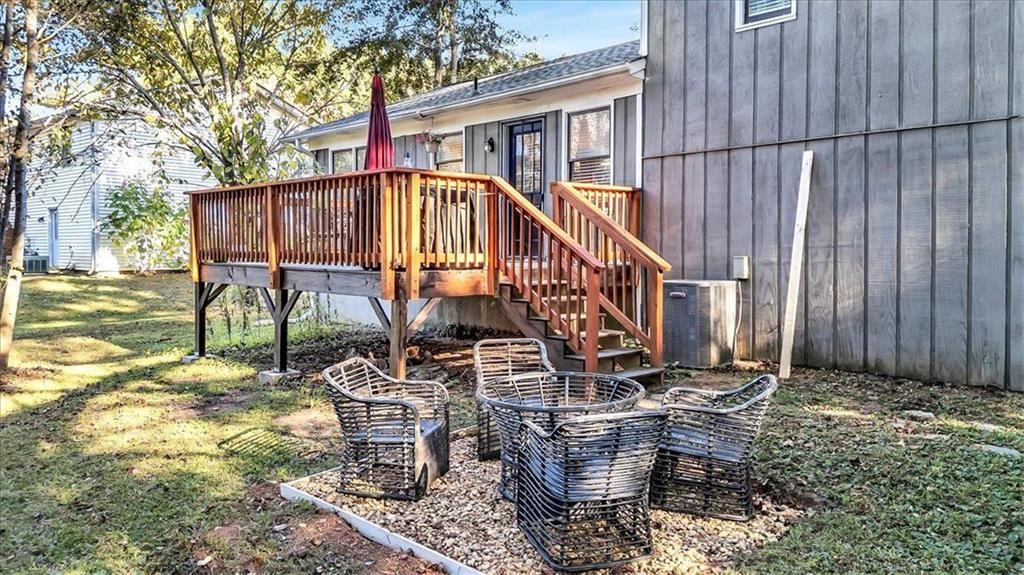 Welcome to this inviting split-level home located in the heart of Conyers, Georgia! This spacious 4-bedroom, 3-bath residence offers over 1,600 square feet of comfortable living space designed for both function and flexibility. The upper-level features three bedrooms and two full bathrooms, including a primary suite with a private en suite bath for added comfort and privacy. The main living area boasts a warm and welcoming atmosphere with a cozy fireplace, ideal for relaxing nights in. The updated kitchen comes equipped with new appliances, providing a modern touch to your daily routine. On the lower level, you’ll find a separate laundry space complete with a new washer and dryer, a full bathroom, and a fourth bedroom that can easily serve as a home office, guest room, or bonus space. This level also offers direct access to the backyard, creating a great indoor-outdoor flow. Step outside to your private backyard oasis, perfect for entertaining or enjoying peaceful mornings with a beautiful view of the Honey Creek Golf Course, located just five minutes away. Nestled in a quiet, well-established neighborhood, this home blends serenity with convenience—close to shopping, dining, and major highways while maintaining a true sense of home. A transferable home warranty will be included, ensuring added peace of mind for the future owners. Schedule your showing today!