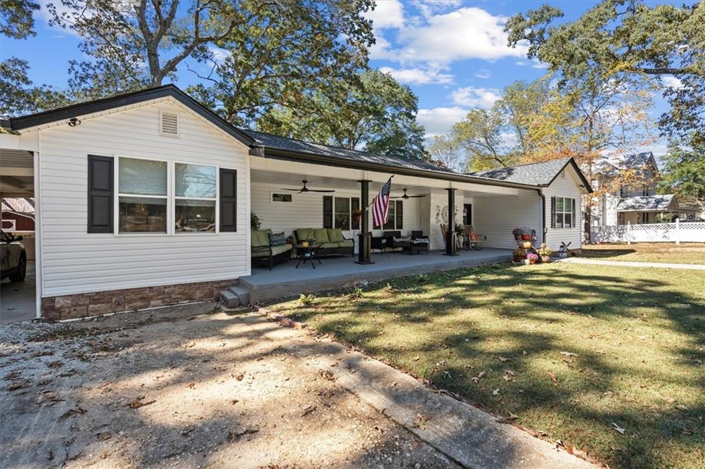 This stunning ranch home with a finished basement offers the perfect blend of Southern charm and modern design. Taken down to the studs and brought back better than ever in 2023 - every detail inside and out is brand new. Step inside to soaring high ceilings, oversized windows that flood the home with natural light, and beautiful finishes throughout. The custom kitchen features leathered countertops, a five-burner gas cooktop, an oversized island, and custom cabinetry that makes it both functional and fabulous. The spacious living area showcases built-in bookcases that flow effortlessly into a large mudroom. Southern-style front and back porches perfect for morning coffee or evening gatherings. Downstairs, the finished basement includes an extra room with a full bathroom, ideal for a guest suite, office, playroom, or entertainment space. Other highlights include: No carpet - easy, low-maintenance living throughout. Tiled showers and spa-inspired bathrooms, Tankless water heater, Oversized carport with extra parking, Level lot with mature trees, and plenty of outdoor space. From the front porch to the backyard, this home feels like a fresh start wrapped in Southern charm.