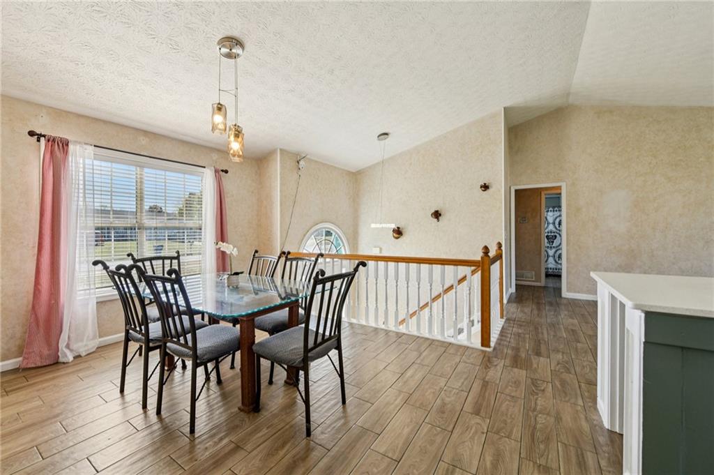 Tucked on over half an acre, this inviting split-level home offers space, style, and endless versatility! A beautifully patterned foyer welcomes you in and leads to the bright upper-level living area, where vaulted ceilings and gorgeous, easy-to-maintain wood-look tile floors create an airy, open feel. The living room is anchored by a charming brick fireplace, perfect for cozy evenings at home. The kitchen is both stylish and functional, featuring a breakfast bar, painted cabinetry, pantry, stainless steel appliances, and abundant counter and cabinet space, ideal for everyday living and entertaining alike. Retreat to the spacious primary suite with room for a private sitting area, complete with an en-suite bath featuring a soaking tub and separate shower. Two additional generously sized bedrooms and a full bath provide comfort and flexibility for everyone! The lower level expands your living options with a large bonus living space, perfect for a media room, home office, or creative studio, plus a convenient kitchenette, an additional room, and a full bath, making it ideal for guests or multi-generational living. Step outside to enjoy the best of indoor-outdoor living with an upper deck and an extended lower patio offering both covered and open areas. The expansive backyard provides tons of green space to relax, play, or entertain, all set on a generous lot that offers privacy and room to roam.