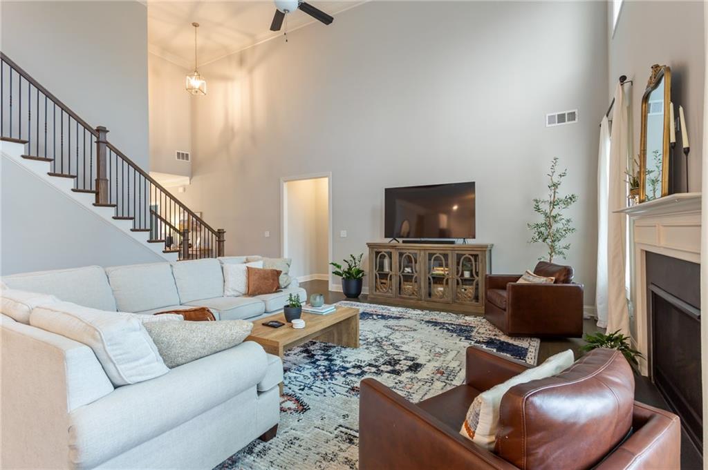 Situated in the desirable Orchard at Mill Creek community, this stunning 2,900-square-foot Craftsman-style home offers an ideal blend of elegance and functional design. The heart of the home is a dramatic two-story great room featuring a cozy gas-log fireplace, which flows seamlessly into a gourmet kitchen outfitted with white cabinetry, granite countertops, a functional eat-in island, and a walk-in pantry with custom wood shelving. Sophisticated details like stained hardwood staircases with wrought-iron spindles and extensive decorative trim elevate the interior, while the main-level master retreat provides a private sanctuary complete with a tray ceiling, an oversized tile shower, and a large garden tub set beneath a picture window. The thoughtfully designed floor plan continues upstairs with three additional spacious bedrooms and two full bathrooms, offering plenty of space for family or guests. Beyond the interior, the 0.28-acre level lot is beautifully landscaped, featuring a private backyard and a spacious patio perfect for outdoor relaxation. Practical features include a formal dining room with panel molding, and energy-efficient insulated windows. Located within the top-rated Mill Creek High School district and just minutes from local trails, shopping, and dining, this move-in-ready residence captures the best of Auburn living.