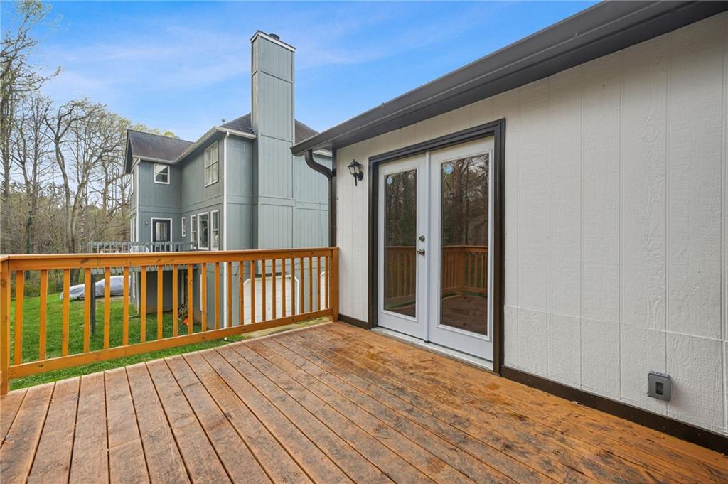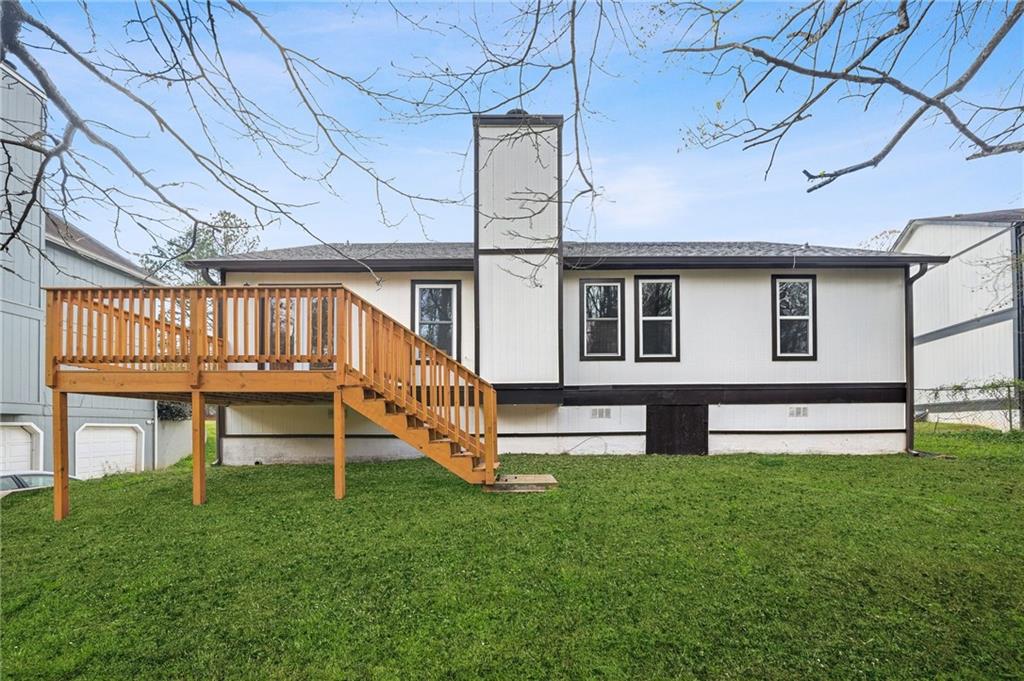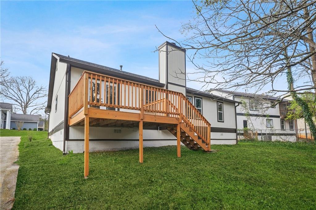 Welcome to 4907 Windsor Downs Drive! This fully renovated property is a pleasant surprise in the Windsor Downs Subdivision as there is no property comparable to it in the community, it is located approximately 20 minutes from the airport and Downtown Atlanta. This property is a complete overhaul from its previous condition as the roof is brand new, brand new deck, fresh new paint exterior and interior. The kitchen has been remodeled with new appliances, new countertops, newly installed island in middle of kitchen, updated cabinetry and new stylish shelving to compliment the cabinetry! New fans, light fixtures and new french doors leading to deck! This property also boasts a beautiful owner's suite with vaulted ceilings and fully remodeled bathroom with stylish double vanity and gorgeous sizeable, multi companion shower. Please come out and see this beautiful property today!