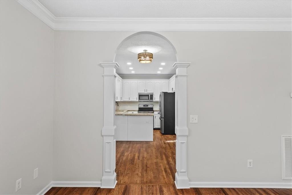 This stunning 2-story traditional perfectly blends timeless CRAFTSMAN EXTERIOR vibes with modernizations, offering CURB APPEAL that truly stands out. The exterior has been revitalized with durable SMART SIDING, ensuring both lasting beauty and peace of mind. The interior is embellished with FRESH NEUTRAL PAINT throughout and gleaming, NEWLY-REFINISHED HARDWOODS that flow through the main living areas. The kitchen features sleek GRANITE COUNTERS AND STAINLESS APPLIANCES, and an elegant arched entry that leads into the FORMAL DINING ROOM detailed with classic JUDGES PANELING. Every bedroom provides a cozy retreat with PLUSH NEW CARPETS, including a LUXURIOUS PRIMARY SUITE whose ensuite bath offers a true spa experience with double vanities, separate tub, and standalone shower. The true showstopper of this property is the SPECTACULAR COVERED BACK PORCH, featuring a TONGUE-AMD-GROOVE WOOD CEILING that overlooks a PRIVATE, FENCED BACKYARD - the perfect outdoor living space for pets, play, and warm-weather entertaining. Ideally situated for a seamless commute, this move-in ready gem is located JUST MOMENTS FROM I-75, offering the perfect balance of privacy and ultimate convenience. Schedule your private tour today and experience the perfect blend of luxury and location!