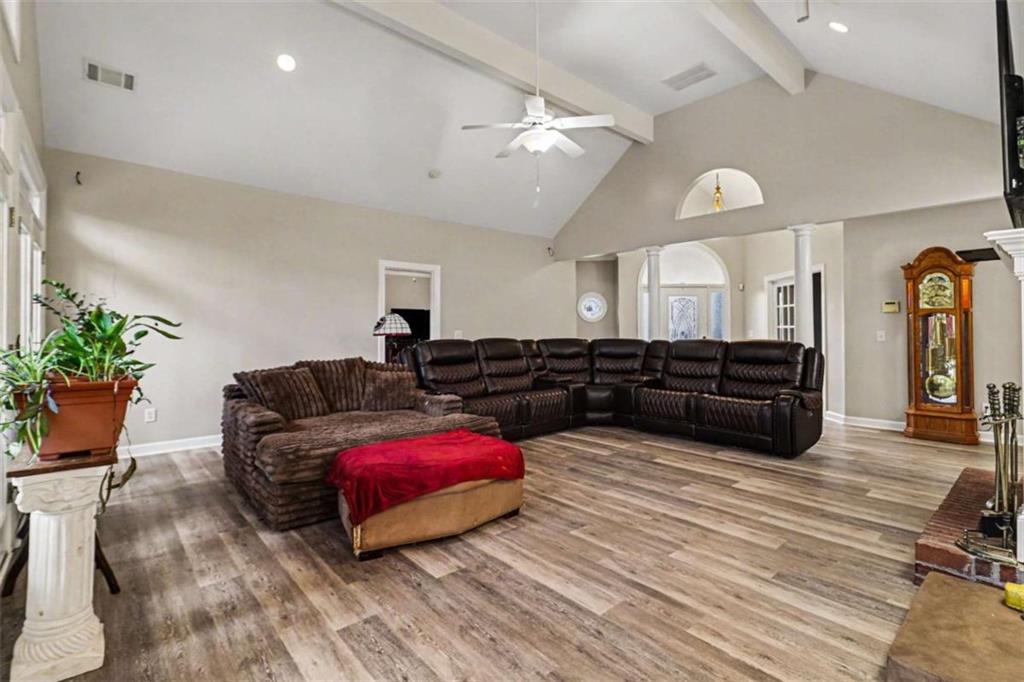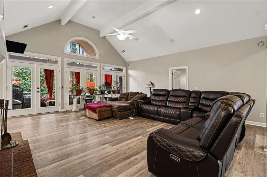 WELCOME HOME to this STUNNING FOUR-SIDED BRICK RANCH in the highly sought-after White Oak Subdivision! Perfectly positioned on a QUIET CUL-DE-SAC LOT with a FENCED BACKYARD and FIREPIT, this beautifully maintained home offers 4 bedrooms, 3.5 bathrooms, and an impressive 4,731 square feet of living space - complete with a FULLY FINISHED BASEMENT and 2-CAR GARAGE. Step into the INVITING FOYER, where TALL, ELEGANT COLUMNS frame the entry to the breathtaking GREAT ROOM. Here you'll find SOARING VAULTED CEILINGS, a stunning BRICK FIREPLACE, custom BUILT-IN BOOKSHELVES and CABINETRY, and THREE SETS OF FRENCH DOORS that open to the SPACIOUS WRAP-AROUND BACK DECK - perfect for entertaining or simply relaxing while overlooking the private backyard. The NEWLY REMODELED KITCHEN is both stylish and functional, featuring a WALK-IN PANTRY, breakfast bar, dedicated breakfast area, office nook, and CUSTOM BUILT-IN SHELVING - all with convenient ACCESS TO THE BACK DECK for seamless indoor-outdoor living. The PRIVATE OWNER'S SUITE is thoughtfully tucked away on its OWN WING for maximum privacy. This retreat boasts a SPACIOUS EN SUITE BATH with a separate soaking tub and tiled shower, DUAL CLOSETS, and a BRIGHT SITTING AREA or OFFICE SPACE with SERENE BACKYARD VIEWS and DIRECT DECK ACCESS. On the opposite side of the home, FRENCH DOORS lead to a PRIVATE ROOM or FLEX OFFICE SPACE. Down the hall, you'll find TWO SECONDARY BEDROOMS, a FULL BATH, and a WET BAR with SITTING AREA and HALF BATH - an ideal setup for guests or multigenerational living. The TERRACE LEVEL adds incredible versatility with an ADDITIONAL BEDROOM, FULL BATH, MEDIA ROOM, EXERCISE ROOM or STORM ROOM, and ABUNDANT STORAGE SPACE. Recent updates include FRESH INTERIOR PAINT, NEW FLOORING, a beautifully UPGRADED KITCHEN, and a BRAND-NEW HVAC SYSTEM for added peace of mind. Conveniently located just minutes from shopping, dining, Piedmont Newnan Hospital, and easy interstate access, this exceptional home truly has it all. Schedule your private showing today - this one is a must-see!