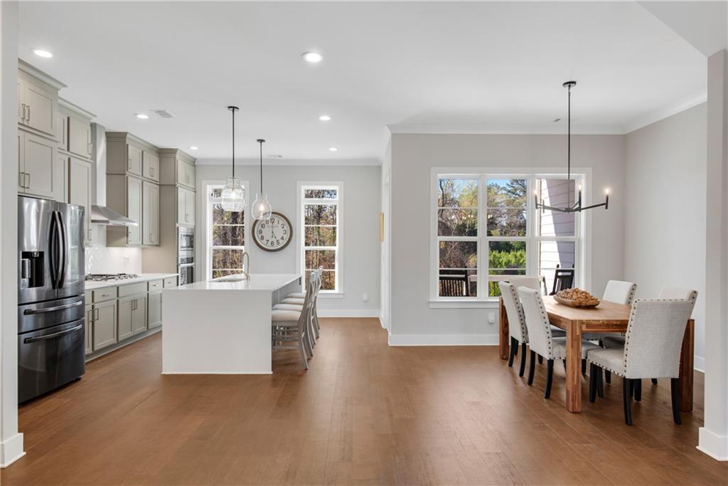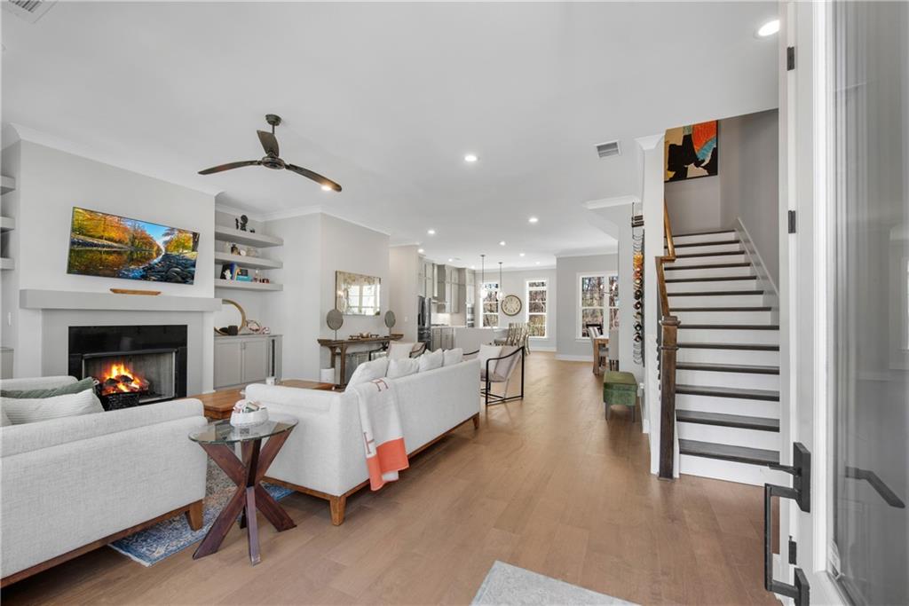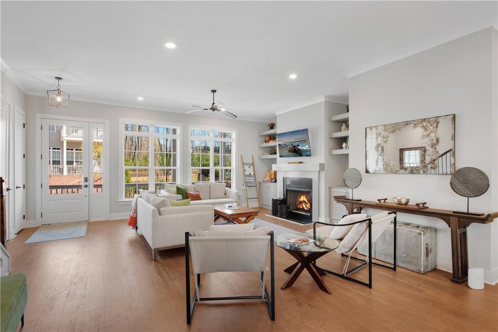 Welcome to one of the most desirable homes in Parkside, beautifully upgraded, thoughtfully designed, and ideally positioned with private, protected wooded views. This larger, wider floorplan lives more like a single family home, featuring 10 foot ceilings, generous living spaces, abundant natural light, and seamless flow for both everyday living and entertaining. The family room features custom built-ins, creating a warm and elevated focal point. The kitchen opens effortlessly to the main living area and dining space. Thoughtfully enhanced with custom built-ins in the family room, custom closets in the primary suite, and upgraded trim work, this home offers a level of finish rarely found in the community. In addition, all appliances remain, providing a true move in ready experience. Enjoy three level living with a flexible lower level space ideal for a home office, media room, or playroom, offering versatility to fit a variety of needs. One of the most special features of this home is its setting, backing to a protected wooded area and offering a rare sense of privacy and a peaceful backdrop that sets it apart. Built in 2022, this home offers the benefits of newer construction paired with thoughtful, high quality upgrades already in place. Ideally located just across from East Roswell Park and with convenient access to shopping, dining, and nearby destinations such as Avalon and downtown Alpharetta, this is a rare opportunity to own one of the best homes in the neighborhood.