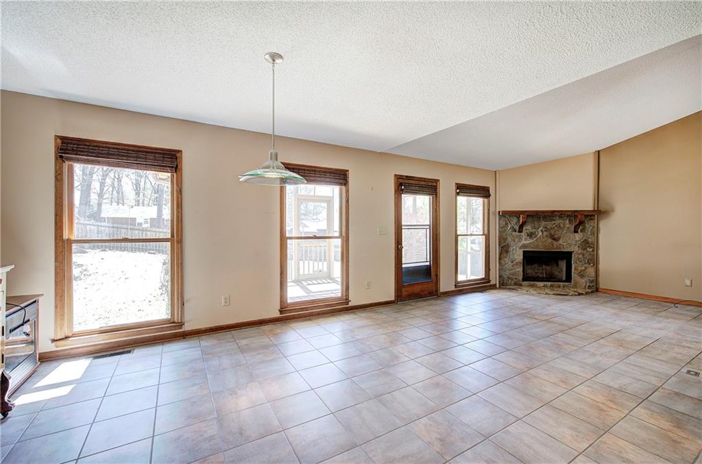 - KitchenCabinets Stain, Eat-in Kitchen, Solid Surface Counters, View to Family Room