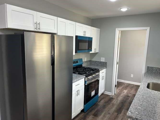 Walking distance to downtown Rockmart! Total RENOVATION!! NEW stainless steel appliances, new interior and exterior paint, new GRANITE countertops with new sinks, new soft-close kitchen cabinets, new bathroom vanities, new toilets, new plumbing/light fixtures and hardware, new flooring, new water heater, new HVAC system and ductwork, new metal roof and gutters, new windows, new interior doors and exterior doors! Camera system stays with house!