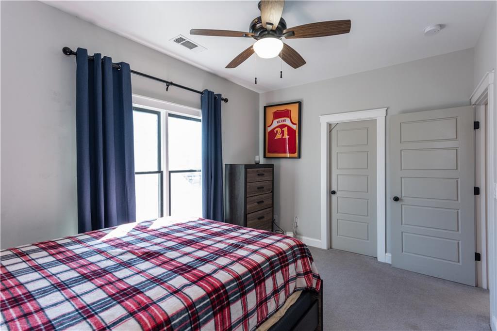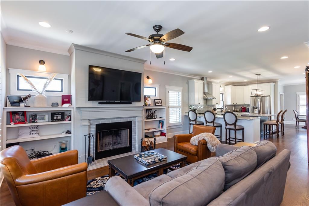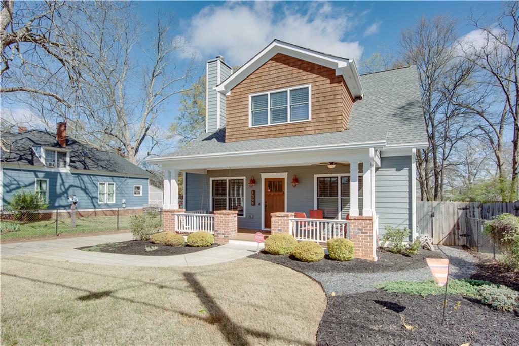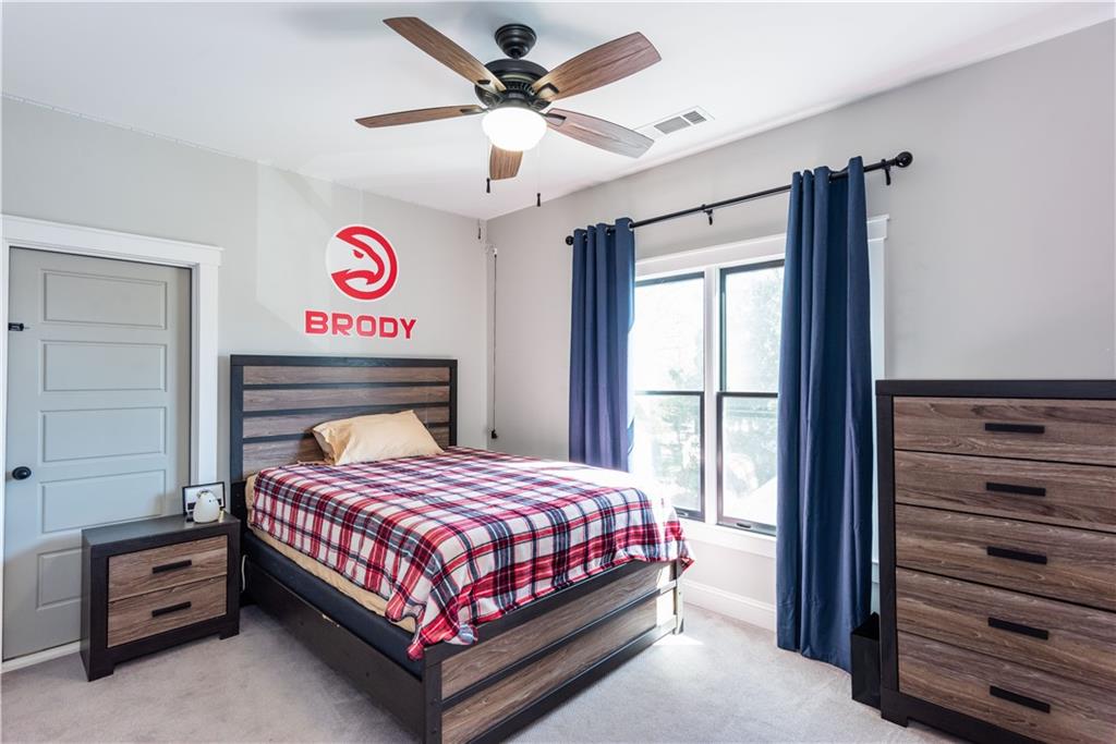 Beautiful custom-built home ideally located directly across from Woodward Academy’s main campus athletic facility. Built in 2017 and meticulously maintained, this like-new home offers an open-concept floor plan with stunning hardwood floors throughout main level. The inviting family room features a wood-burning fireplace and custom built-in bookshelves, flowing seamlessly into the chef’s kitchen complete with double islands, abundant storage, and a gas cooktop, perfect for both everyday living and entertaining. A separate dining area adds flexibility for gatherings. The spacious owner’s suite on the main level is a true retreat, offering dual walk-in closets and a spa-like en-suite bath with soaking tub, separate shower, and double vanities. Upstairs, you’ll find two generously sized bedrooms, each with walk-in closets, a shared hall bath with a large shower, and a versatile bonus room ideal for a home office, secondary living space, or playroom. Additional highlights include a tankless water heater, laundry chute access from all bedrooms, a private half bath on the main level, mud room, a covered front porch, and a large back deck overlooking a fenced backyard. Ample parking accommodates three or more vehicles. Unbeatable location just steps from Woodward Academy and minutes to Hartsfield-Jackson Airport, Delta, Porsche, Tyler Perry Studios, and all major Atlanta highways.