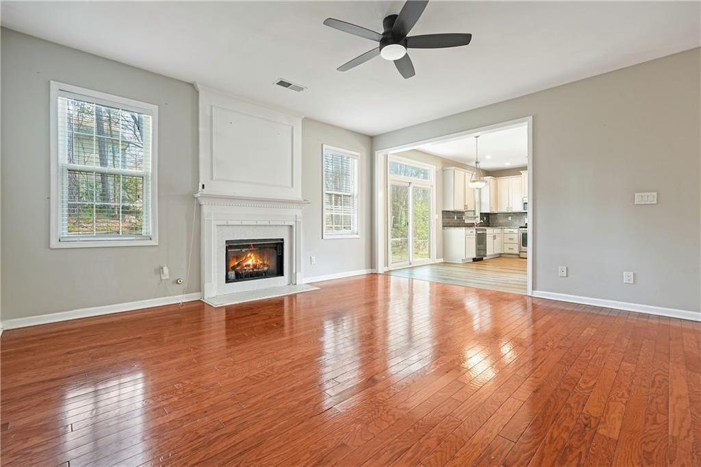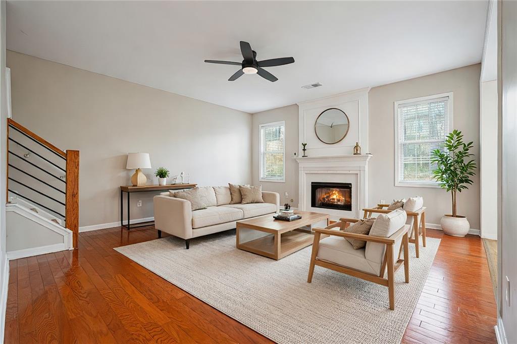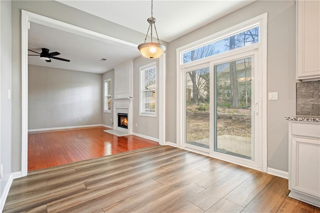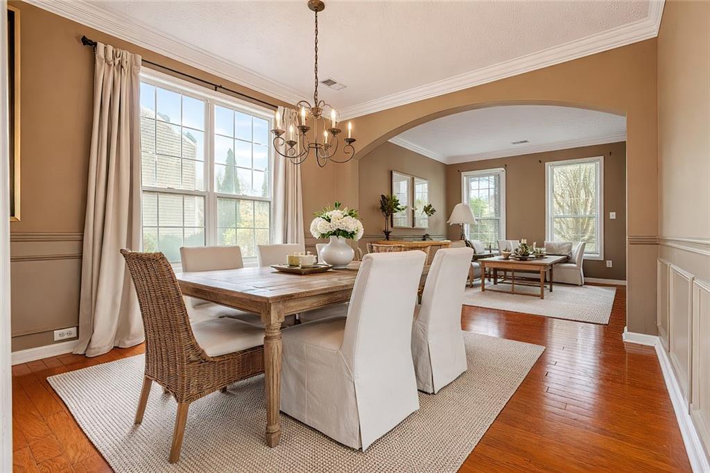 Set in a convenient Austell location with easy access to I-20, downtown Atlanta, shopping, dining, and entertainment, this home pairs classic architectural details with thoughtful updates and everyday functionality. Hardwood floors on the main level, arched doorways, crown molding in formal areas, and picture frame wainscoting in the dining room create a warm, polished first impression. The layout offers inviting living space anchored by a fireside family room with a wood-burning fireplace, while vaulted ceilings add openness and dimension throughout the home. The recently renovated kitchen is designed for both daily living and easy entertaining, featuring granite countertops, a glass tile backsplash, and a fully stocked premium line of near-new stainless steel appliances. Upstairs, the primary suite delivers a light-filled retreat with vaulted ceilings, a large walk-in closet, and a beautifully updated bath with double vanities, quartz countertops, tile flooring, and a spa-style walk-in shower with marble walls. Generously sized secondary bedrooms provide flexibility for guests, office space, or everyday living. A private second-floor laundry room adds convenience, and the washer and dryer are included. Outside, the private backyard offers an extended patio pad that is ideal for grilling, dining, or relaxing outdoors. With updated finishes, strong design details, and a location that keeps commuting and daily amenities within easy reach, this home offers comfort, style, and practicality in equal measure.