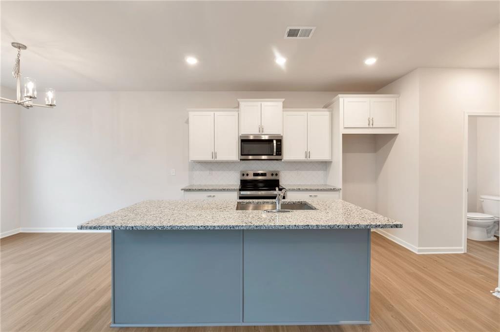 - KitchenBreakfast Bar, Eat-in Kitchen, Kitchen Island, Pantry, Stone Counters, View to Family Room