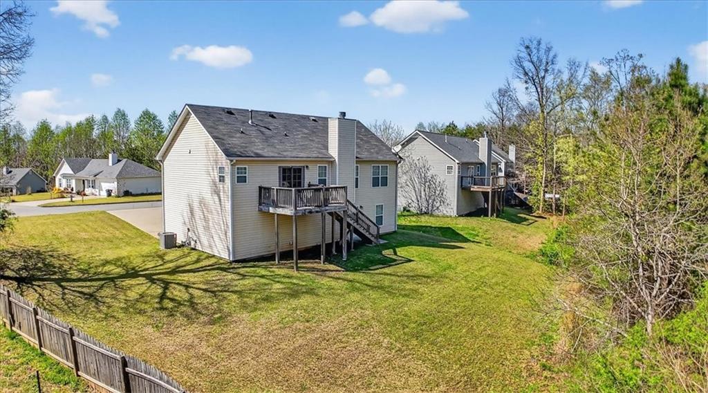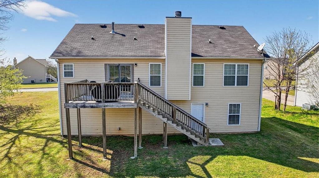Welcome home to this beautiful split-level gem in Rockmart, perfectly situated on a spacious lot with a large front yard that offers endless possibilities! Step inside to a welcoming foyer that leads up to the main living area, where vaulted ceilings, abundant natural light, and a stunning brick fireplace create a bright and airy atmosphere. The open-concept layout flows seamlessly into the dining area and kitchen, making it ideal for entertaining and everyday living. The kitchen is filled with natural light and features a cozy corner sink that adds charm and character. Just off the dining area, a sliding glass door leads to the back deck—perfect for grilling, relaxing, and enjoying the changing seasons in your private backyard. The main level features a spacious primary suite with tray ceilings, plenty of natural light, and a private ensuite complete with double vanities, a soaking tub, separate shower, and a walk-in closet—your perfect retreat at the end of the day. Two additional bedrooms, a shared full bathroom, and a conveniently located laundry area complete the main floor. Downstairs, you’ll find two additional generously sized bedrooms with a private entrance from the backyard, along with a shared bathroom—ideal for a teen suite, in-law space, or added flexibility. This isn’t just a house—it’s a place to truly feel at home. Come see it for yourself!