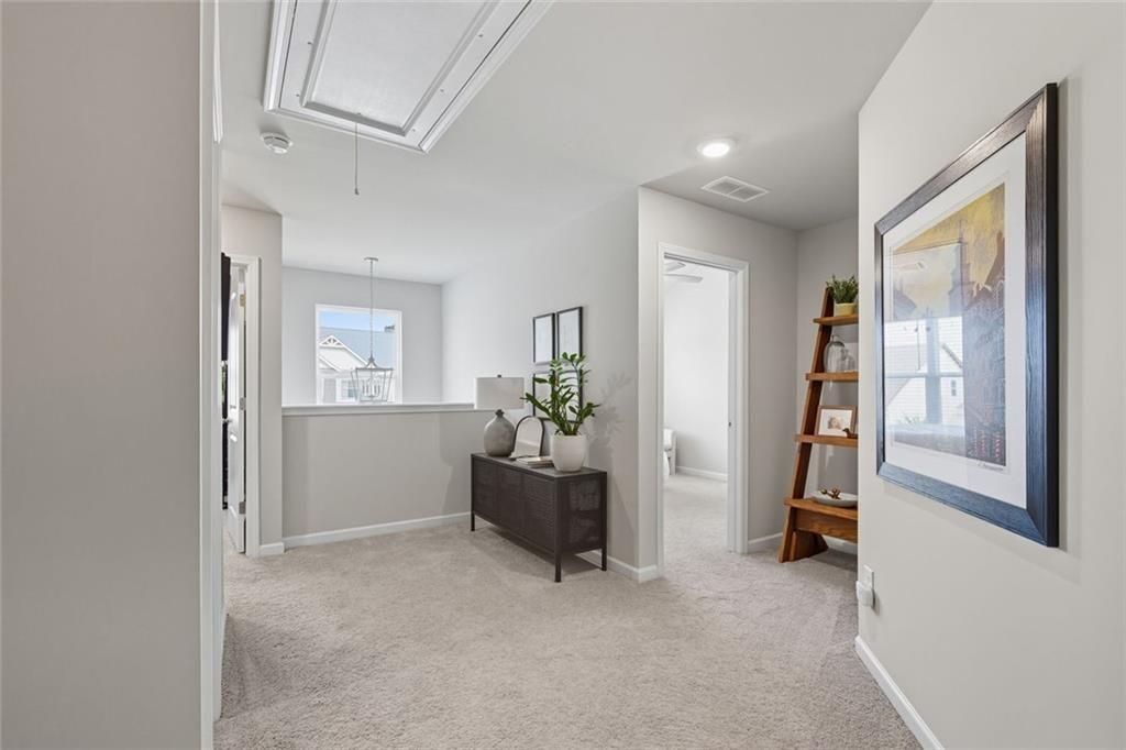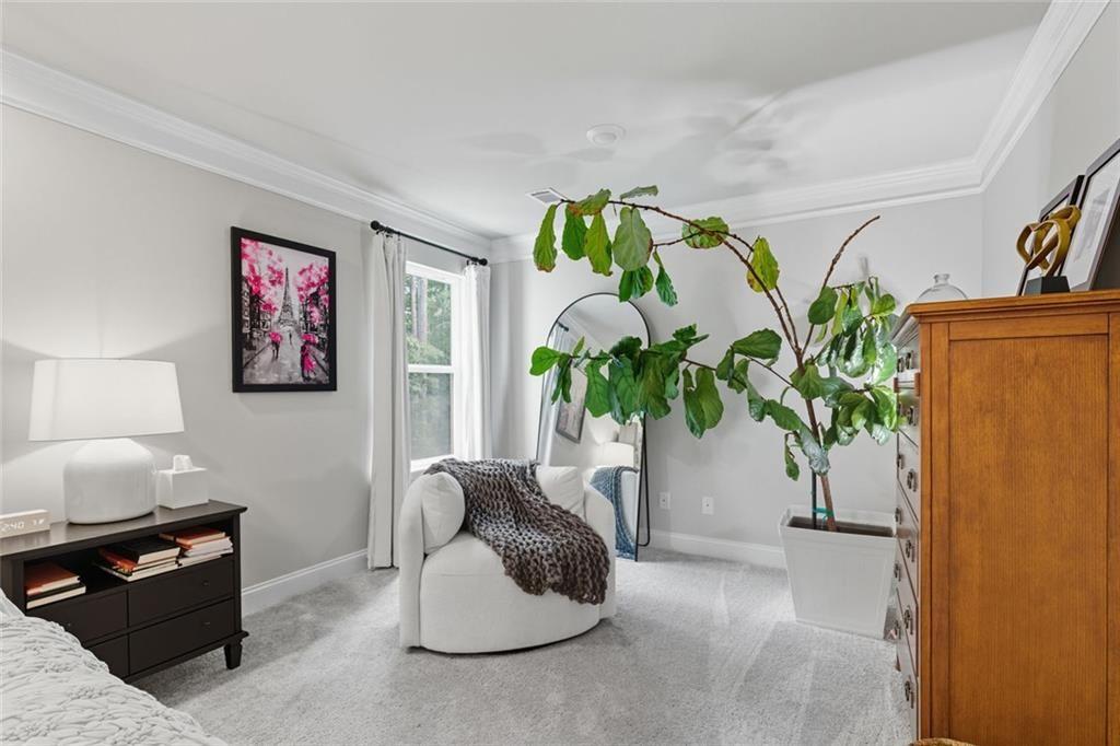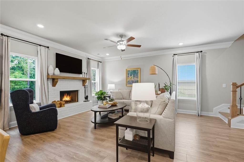 NEW PRICE IMPROVEMENT! Look no more! This beautifully crafted floor plan offers 4 bedrooms, 3.5 baths, and a thoughtfully designed layout that blends style and functionality. Just off the foyer, a versatile flex room provides the perfect space for a home office, study, or additional living area. The open-concept kitchen and great room create an inviting space ideal for both everyday living and entertaining. The kitchen is truly a standout, featuring a large island with pendant lighting, a fireclay farmhouse sink, quartz countertops, white shaker cabinetry, stainless steel appliances, a double oven range, and an oversized walk-in pantry. Upstairs, the spacious owner’s suite serves as a private retreat, complete with a sitting area, two custom walk-in closets, and a spa-inspired bath showcasing a large tiled shower, dual quartz vanities, and elegant tile flooring. Secondary bedrooms are generously sized and share well-appointed baths with steel tubs and beautifully tiled finishes. Upgrades throughout include LVP hardwood-style flooring on the main level, oak-stained hardwood stairs, and a cozy brick hearth fireplace. Step outside to the covered back porch and enjoy peaceful wooded views—an uncommon and highly desirable feature in this community. Located in The Enclave at Brookside Crossing, residents enjoy resort-style amenities including tennis and pickleball courts, basketball, a playground, grilling station, fire pit, and pool. Conveniently situated with easy access to I-85, the Mall of Georgia, dining, shopping, entertaining and more, this exceptional home offers the perfect combination of comfort, style, and location. SELLER SAYS BRING US AN OFFER!!