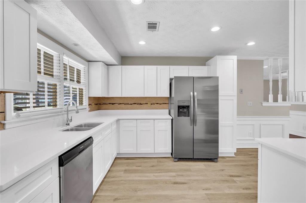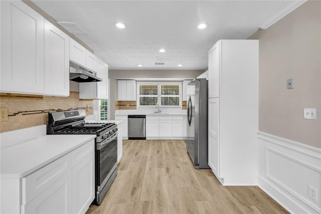 Welcome to 3231 Stanton Road SE, Conyers, Georgia 30094 — a beautiful 4-bedroom, 2-bath, four-sided brick ranch nestled on a private 1.96-acre level corner lot. This move-in-ready home features a spacious family room highlighted by a classic brick fireplace, perfect for relaxing or entertaining. The kitchen boasts cabinetry, stainless steel appliances, and modern fixtures, offering both style and functionality. Both bathrooms has new tile and contemporary fixtures. Fresh interior and exterior paint, with luxury vinyl plank flooring throughout, give the home a clean, modern feel. Enjoy meals in the inviting dining area, and take advantage of the convenience of a side-entry two-car garage. With ample outdoor space and thoughtful updates throughout, this property offers the perfect blend of comfort, privacy, and timeless appeal.