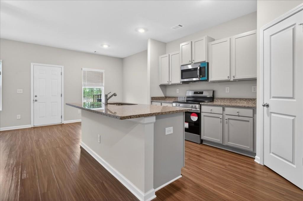 Move-In Ready Townhomes at Brexley Manor - Affordable, Stylish, and Built for Easy Living! Welcome to Brexley Manor, where comfort, style, and affordability come together. These beautiful 3-bedroom, 2.5-bath townhomes feature an open, modern floor plan designed for today's lifestyle. The spacious kitchen offers granite countertops, stainless steel appliances, and a large island with breakfast bar that flows seamlessly into the living room-perfect for entertaining or everyday living. A convenient half bath on the main level adds extra functionality for guests. Upstairs, you'll find all three bedrooms, including an extra-large primary suite with a generous walk-in closet. The primary bath features double vanities and a large walk-in tile shower, creating a private retreat. Two spacious secondary bedrooms also include large walk-in closets, and the hallway laundry closet makes chores simple and convenient. Each home also includes a two-car garage, offering plenty of space for parking and storage. Modern finishes, smart design, and unbeatable value - Brexley Manor townhomes won't last long. Schedule your showing today and secure your new home before they're gone!